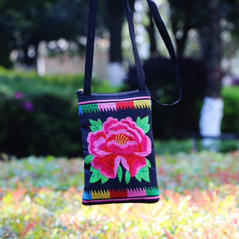 Ethnic Style Tribal Embroidery Flower Crossbody 6.5 Inch Mobile Phone Bag Hanging Neck Mobile Phone Bag