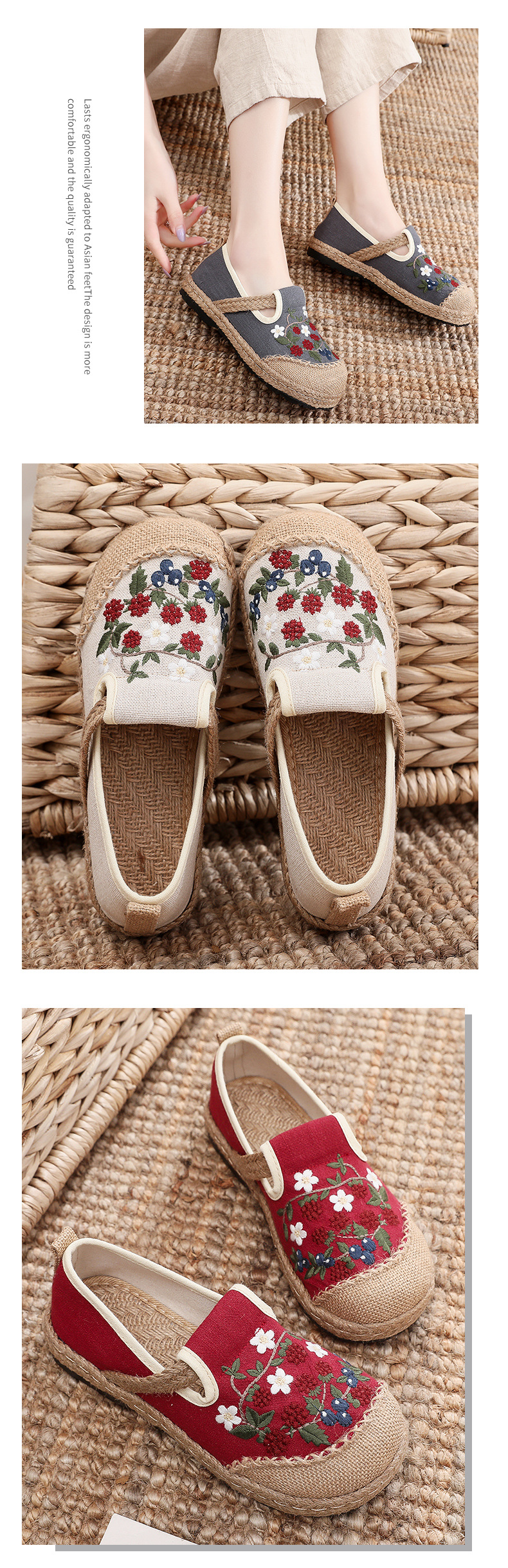 Shallow-cut cloth shoes custom-made one-pedal ethnic embroidered shoes light breathable sweat-absorbent cloth shoes.