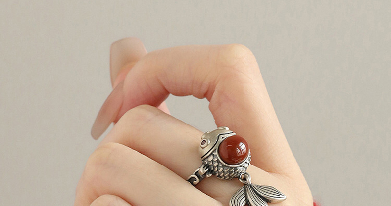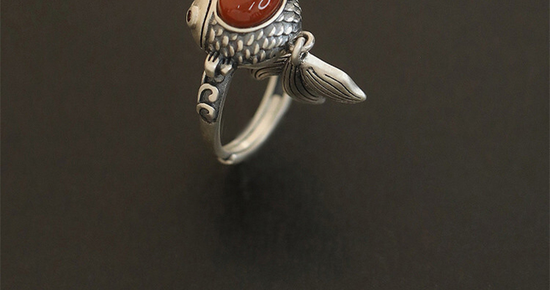 925 Silver Retro New Tibet Style Lucky Little Fat Fish Koi Ring