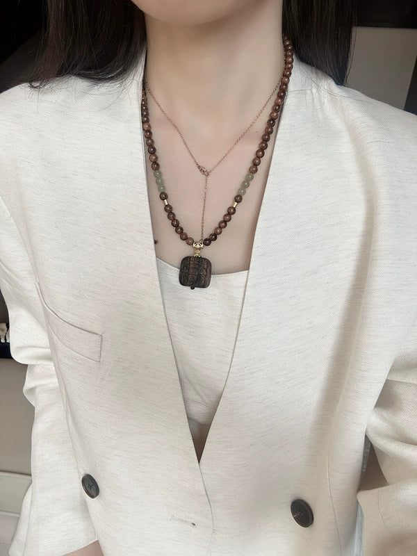 Black Pear with Agarwood Zakiram Square Pendant Necklace, Natural Hetian Jade