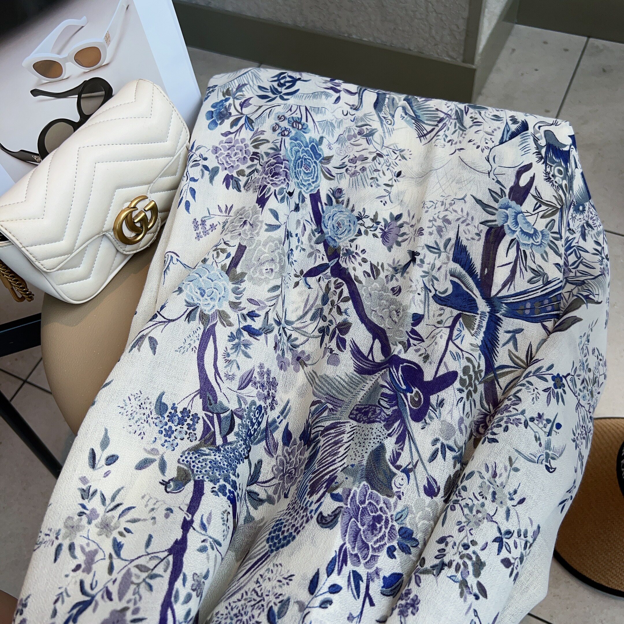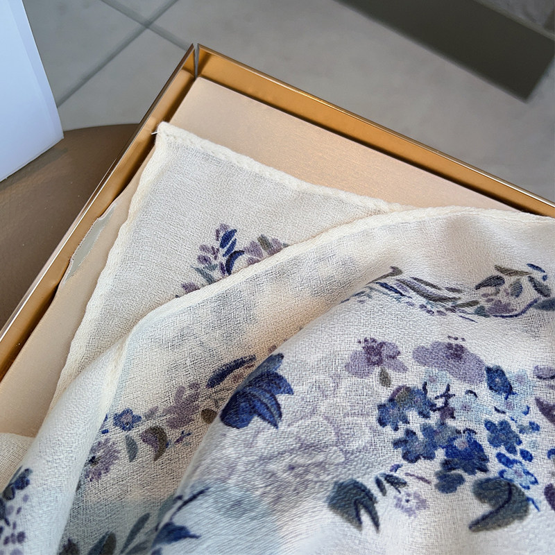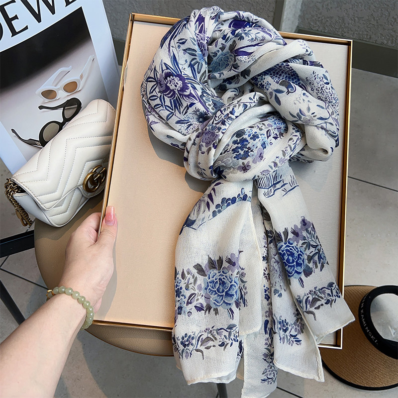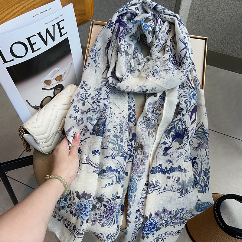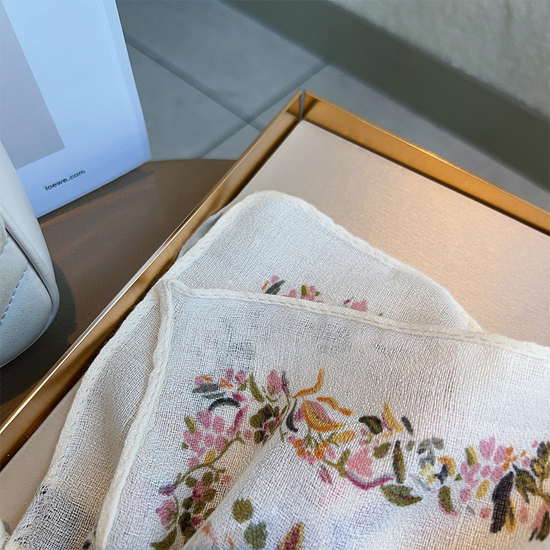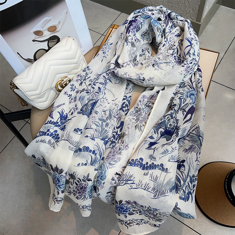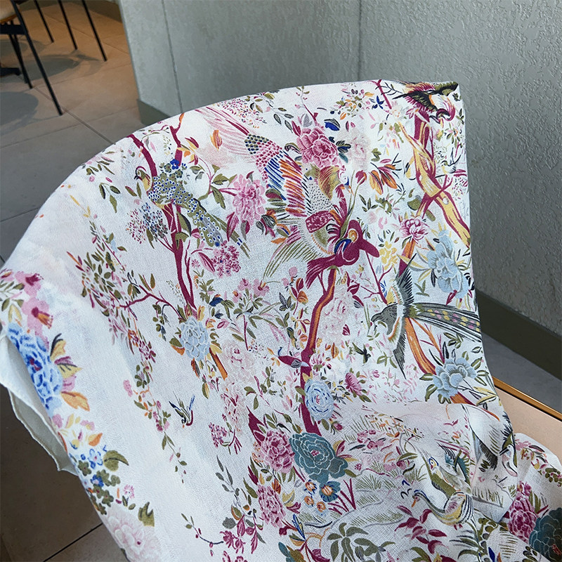 Cotton and Linen Scarf Female Original Design Birds and Flowers Pastoral Style Versatile Warm and Beautiful Neck Shawl Spring and Autumn New