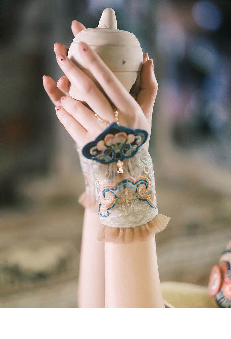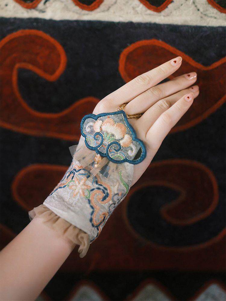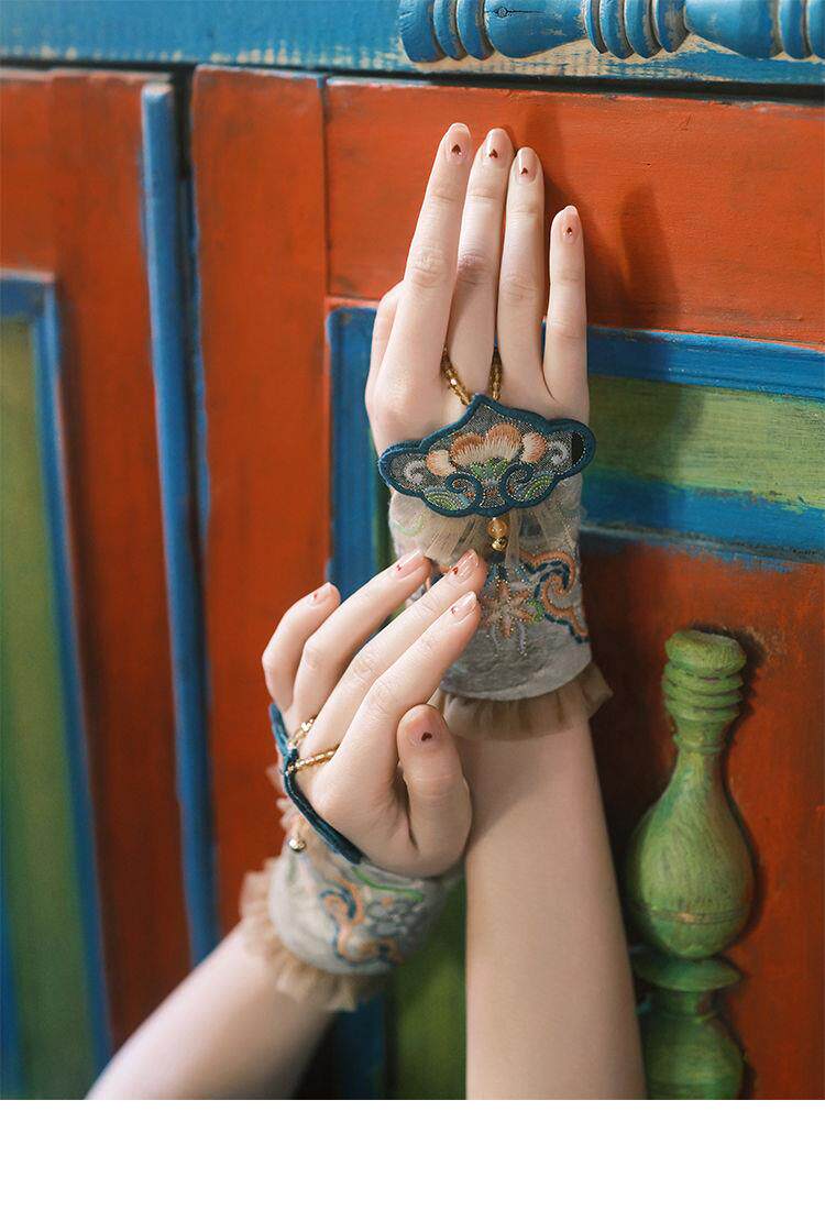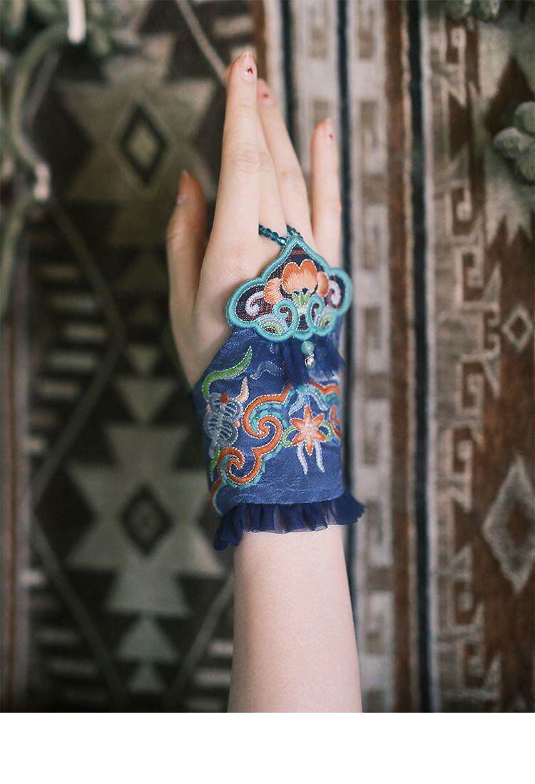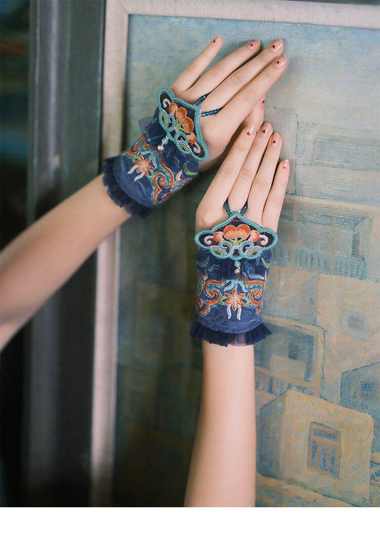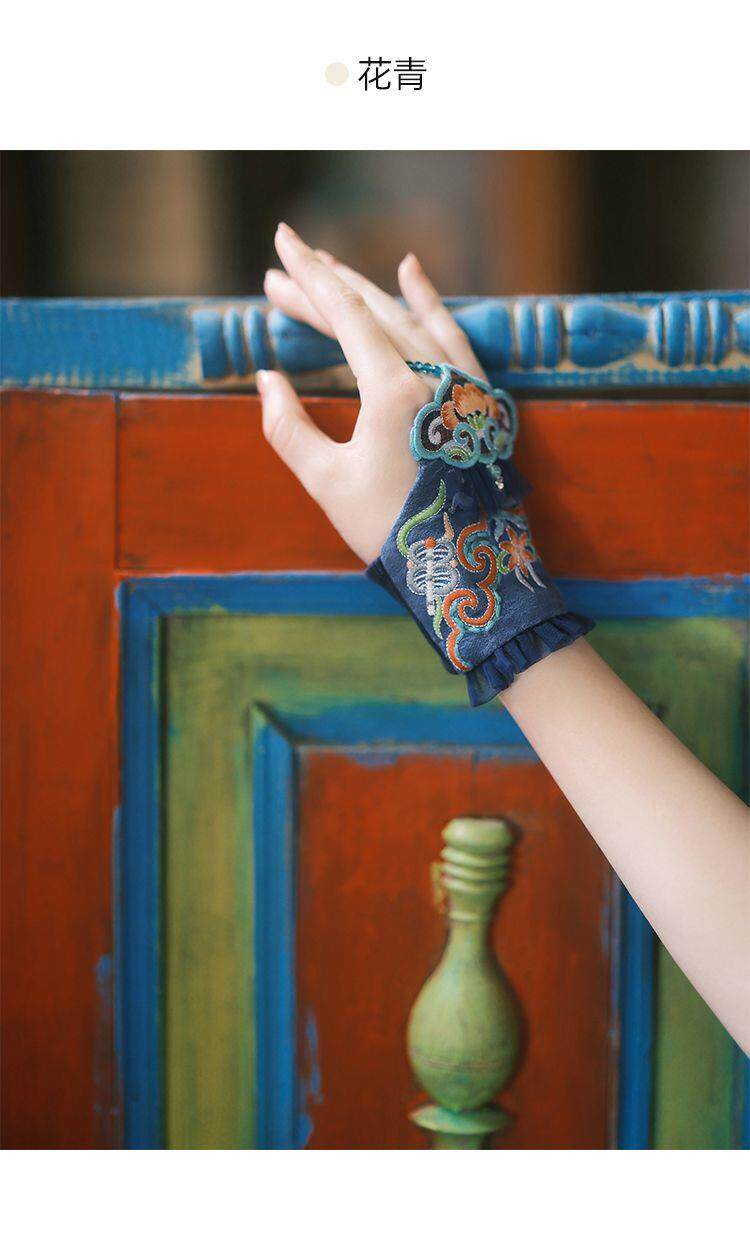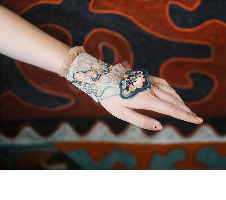 New Ethnic Style Embroidered Flower Wrist Gloves Women's Short Lace Decorative Bell Gloves Wrist Guards