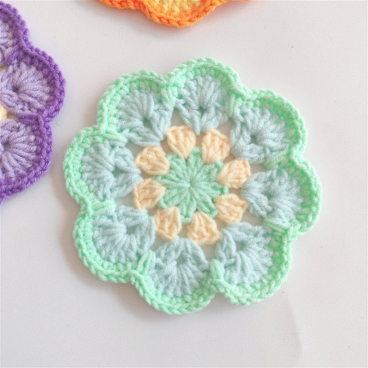Hand-crocheted Coaster Cute Phoenix Tail Flower Coaster Tea Mat Wool Woven Hand Crochet Flower Piece